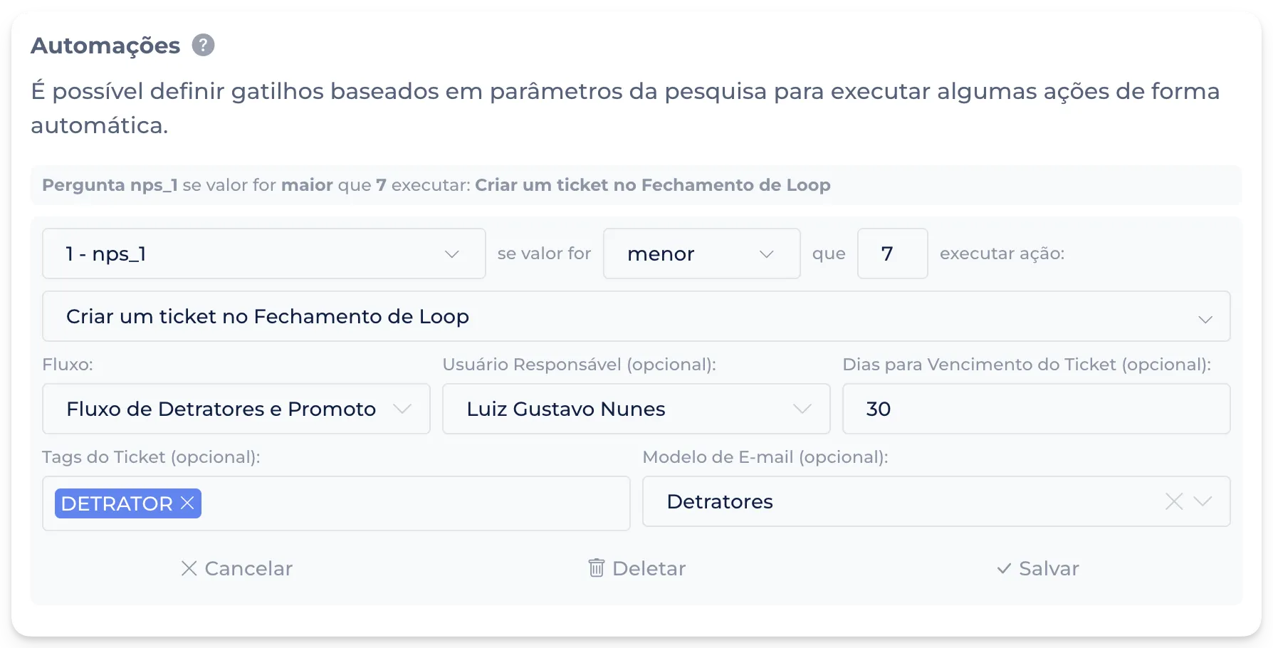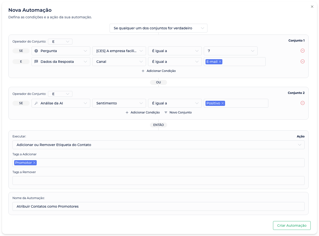 Com essa evolução, você ganha mais controle, flexibilidade e precisão na definição das regras, tornando suas automações mais inteligentes e alinhadas aos diferentes cenários do seu negócio.