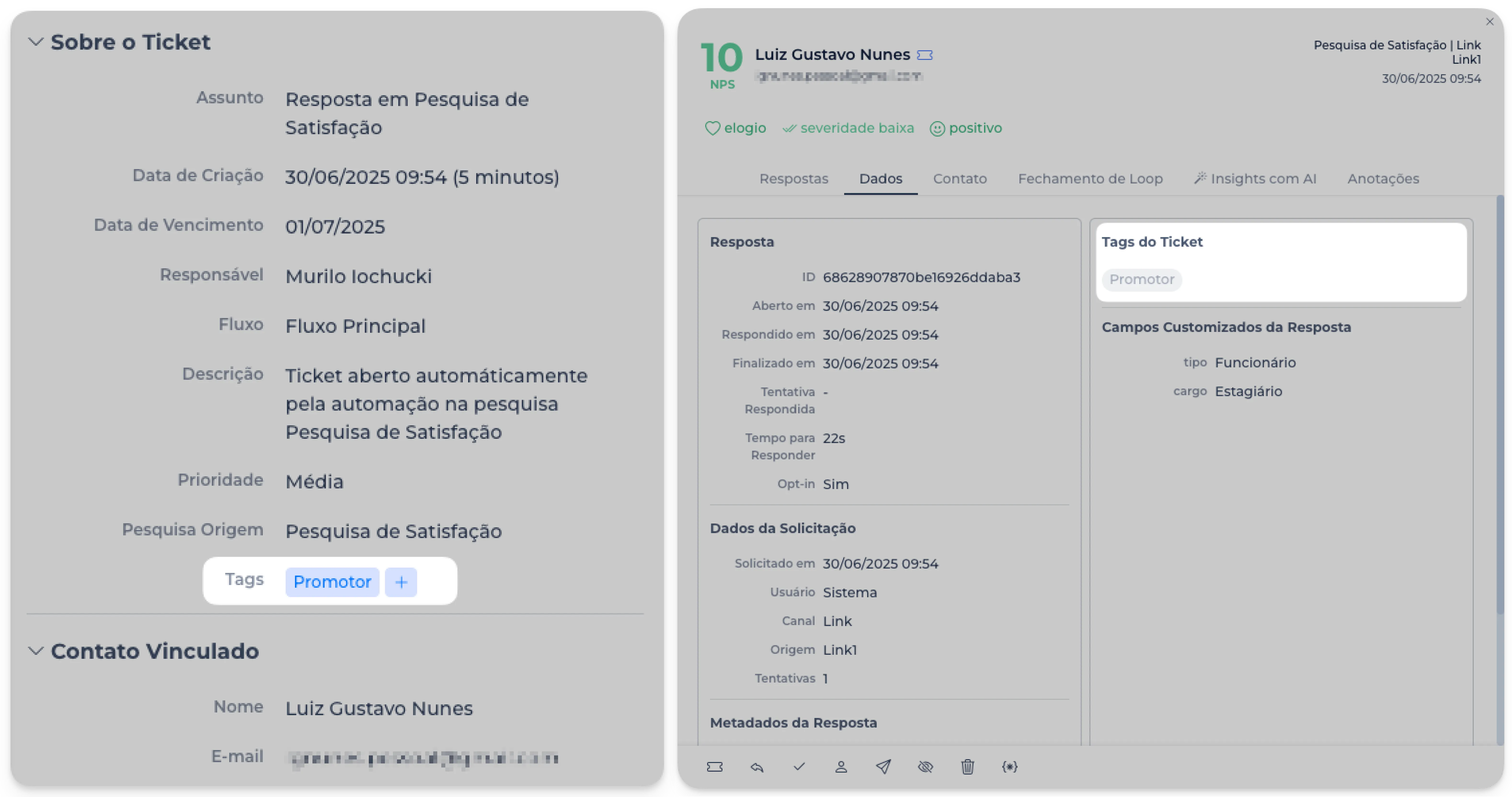 Os tickets do Fechamento de Loop agora podem ser filtrados por Campo Customizado da Resposta, proporcionando maior precisão na análise.