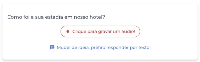 Adicionamos a possibilidade de ativar a opção "Permitir Envio de Áudio como Resposta" em pesquisas com o canal In-App selecionado além do canal Link, entretanto, no In-App não é possível gravar áudio. A alteração foi feita para que não seja necessário criar duas pesquisas diferentes para cada canal.