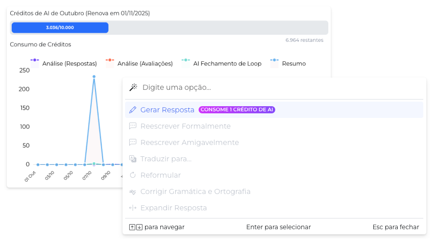 - Adicionamos um gráfico com o consumo de respostas dos meses anteriores, facilitando o acompanhamento do uso.