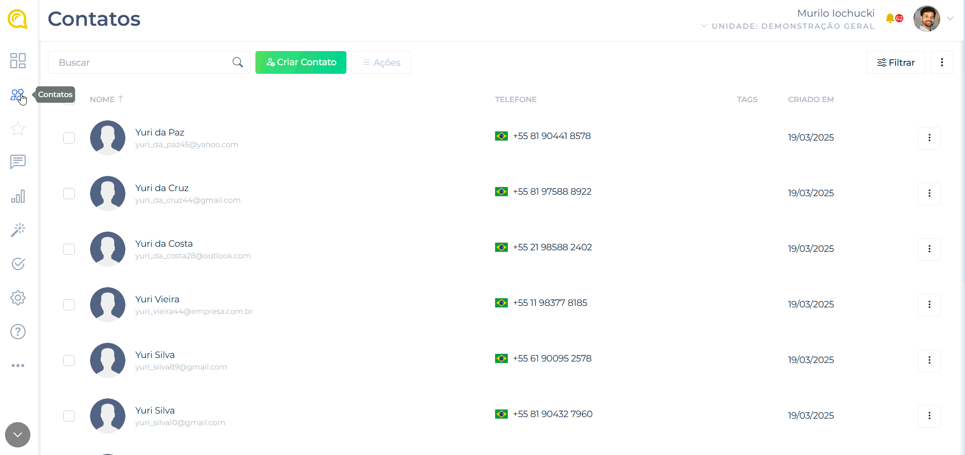 No menu lateral esquerdo, clique em 👤 Contatos.