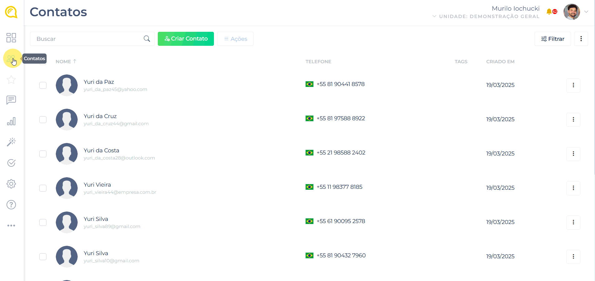 Etiquetas e empresas são as principais formas de organizar e segmentar sua base de contatos. Use etiquetas para agrupar contatos por critérios de campanha ou perfil, e empresas para vincular contatos às suas respectivas organizações.