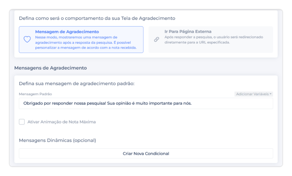 Configure o que o respondente verá após finalizar a pesquisa: