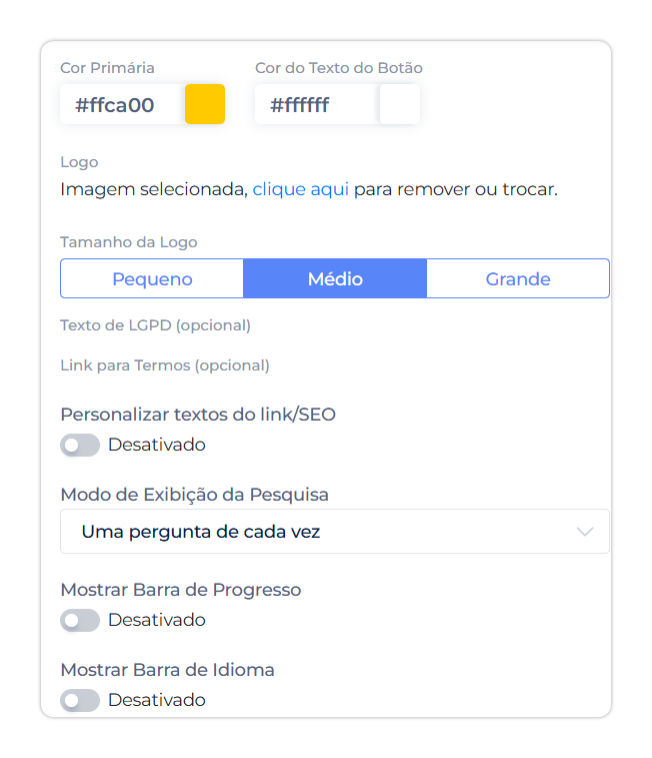 Configure a identidade visual antes de montar as perguntas: